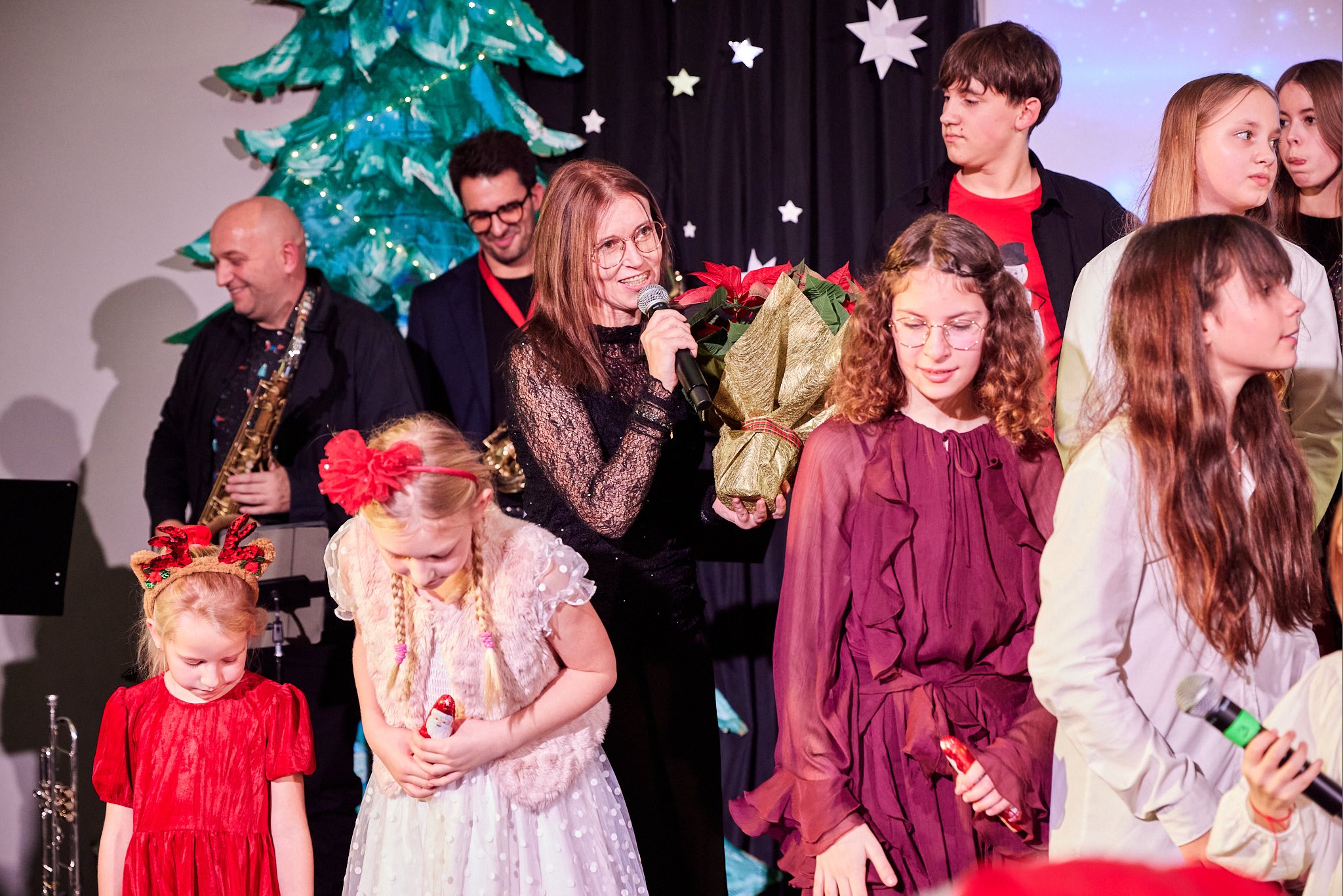Szczególnym momentem wieczoru było niespodziewane pojawienie się Świętego Mikołaja, które wniosło do koncertu mnóstwo radości i świątecznego ciepła 🎅✨