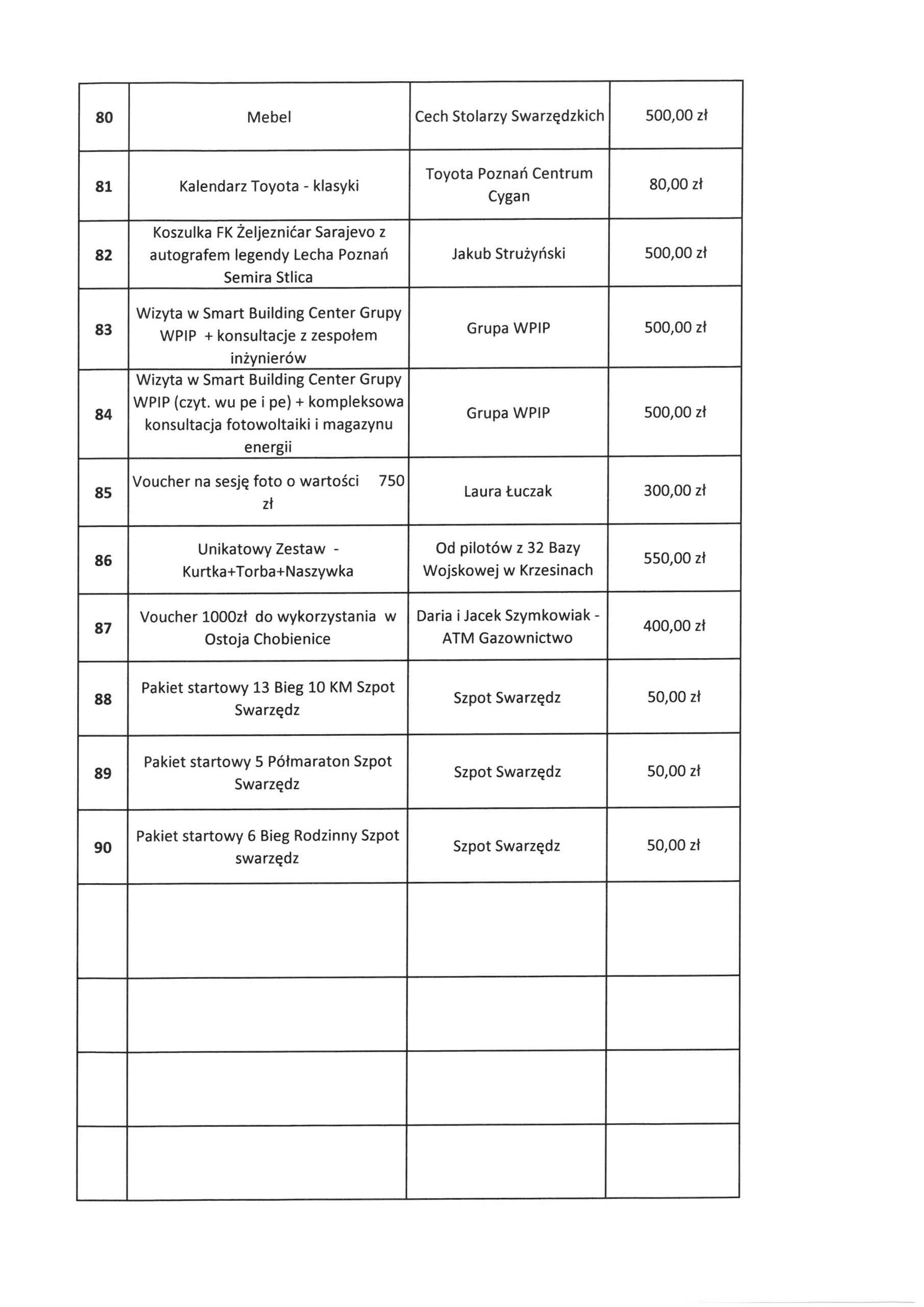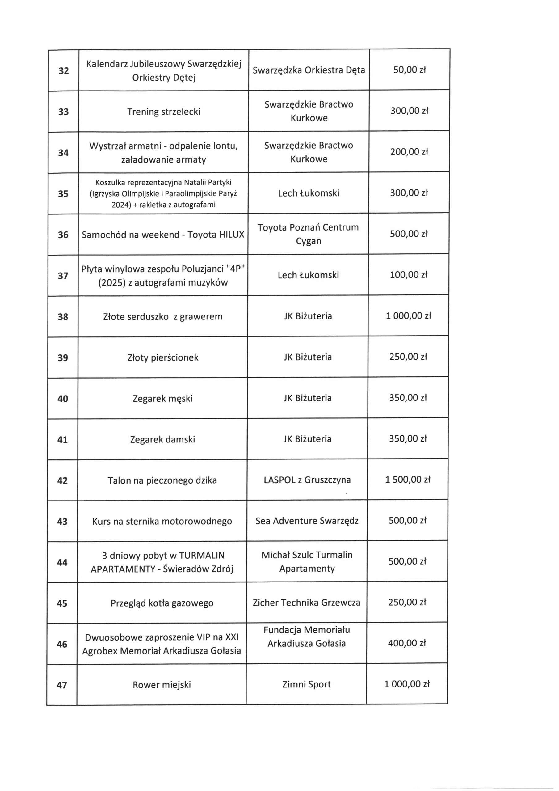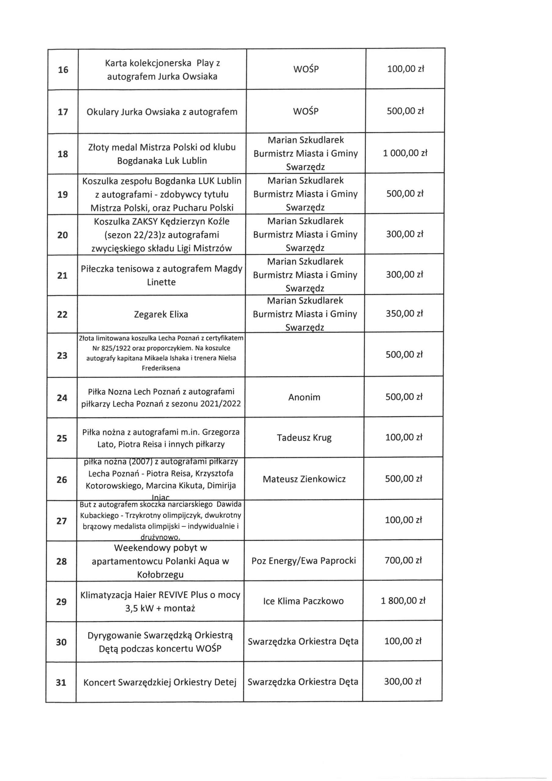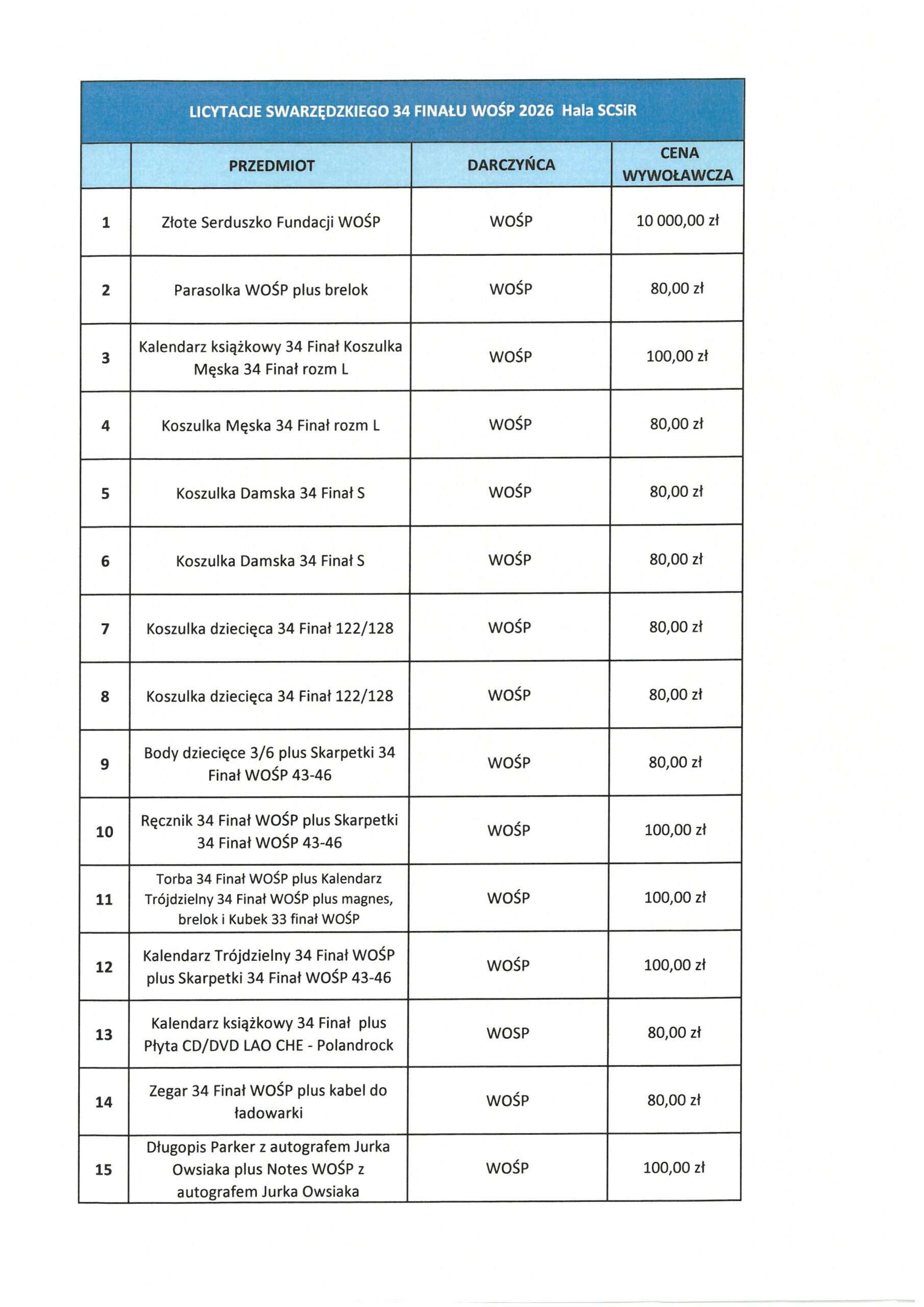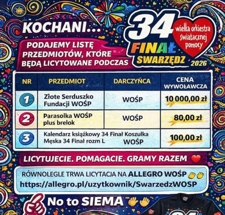 KOCHANI 💗💗💗 Podajemy listę przedmiotów, które będą licytowane podczas 34. Finału Wielkiej Orkiestry Świątecznej Pomocy. Miejsce. Hala SCSiR, ul. św. Marcina 1. Równolegle trwają licytacje online na ALLEGRO WOŚP Link poniżej 👇👇👇 https://allegro.pl/uzytkownik/SwarzedzWOSP Licytujecie. Pomagacie. Gramy razem 💗 No to SIEMA 👋👋👋 |