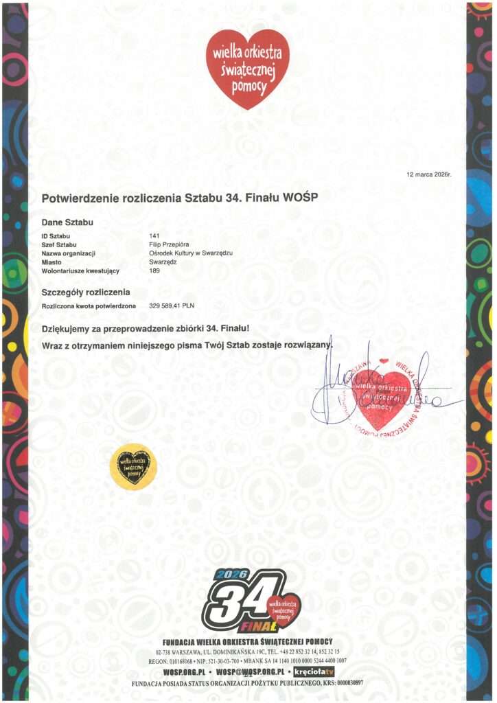 Jeszcze raz ogromne dzięki każdemu kto włączył się w 34 Swarzędzki Finał WOŚP ![]()