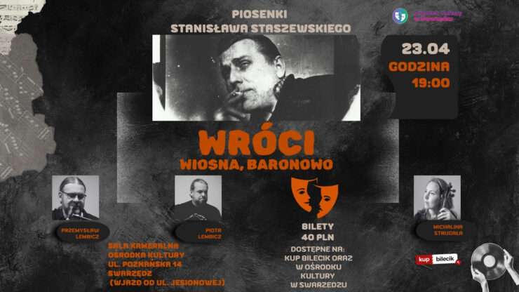 ✨ Koncertowi towarzyszyć będzie promocja najnowszego tomiku dzieł zebranych Stanisława Staszewskiego – dostępnego do zakupu na miejscu.